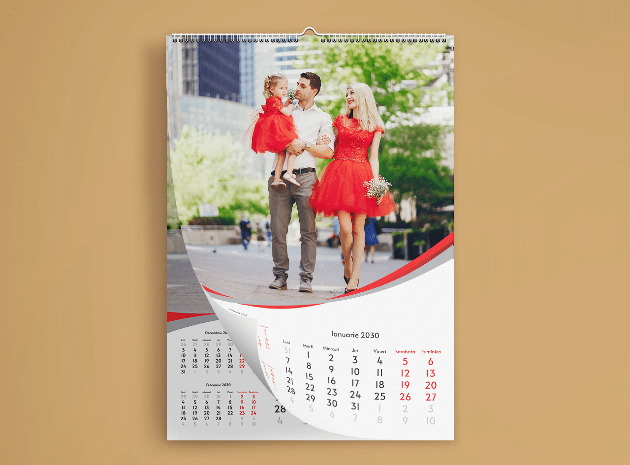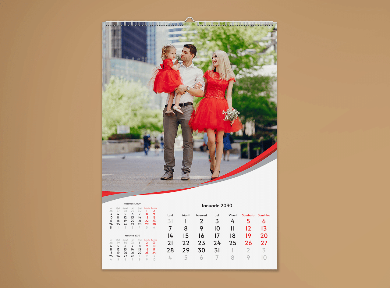 Descoperă bucuria de a crea amintiri neprețuite pentru familia ta cu calendarele personalizate, ce îmbină eleganța și originalitatea prin utilizarea a 12 poze unice, fiecare imprimată cu tehnologie UV sau Digitală de înaltă calitate.