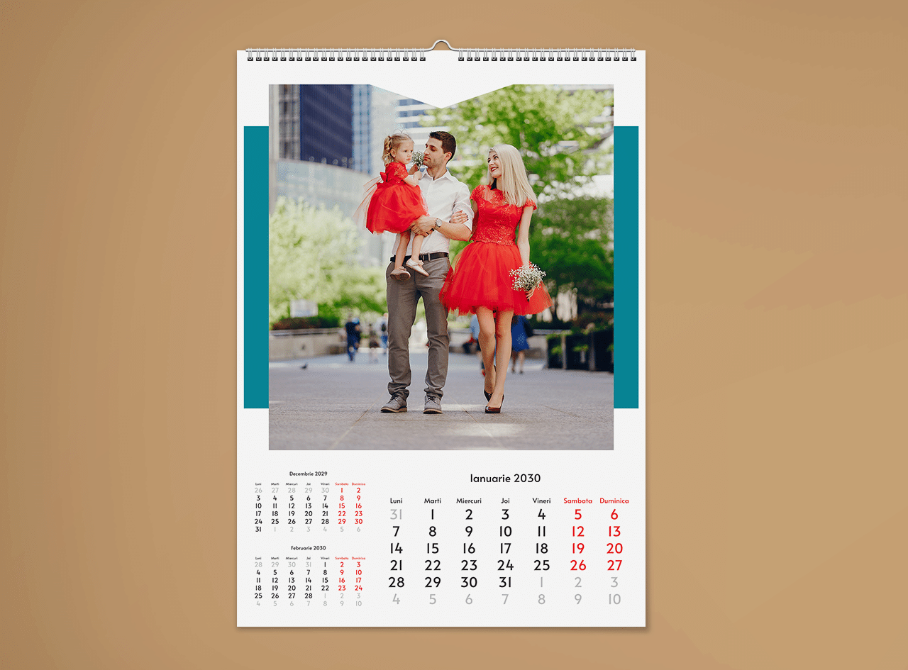 Descoperă bucuria de a crea amintiri neprețuite pentru familia ta cu calendarele personalizate, ce îmbină eleganța și originalitatea prin utilizarea a 12 poze unice, fiecare imprimată cu tehnologie UV sau Digitală de înaltă calitate.