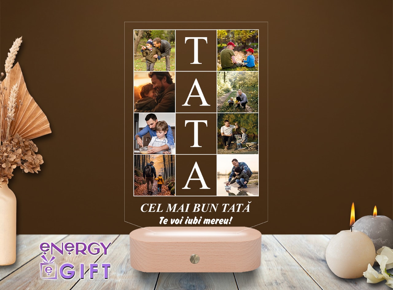 Dăruiește-i tatălui tău o lampă LED 3D cu colaj foto personalizat, un simbol al momentelor frumoase petrecute împreună. O piesă luminoasă care spune „mulțumesc” fără cuvinte.