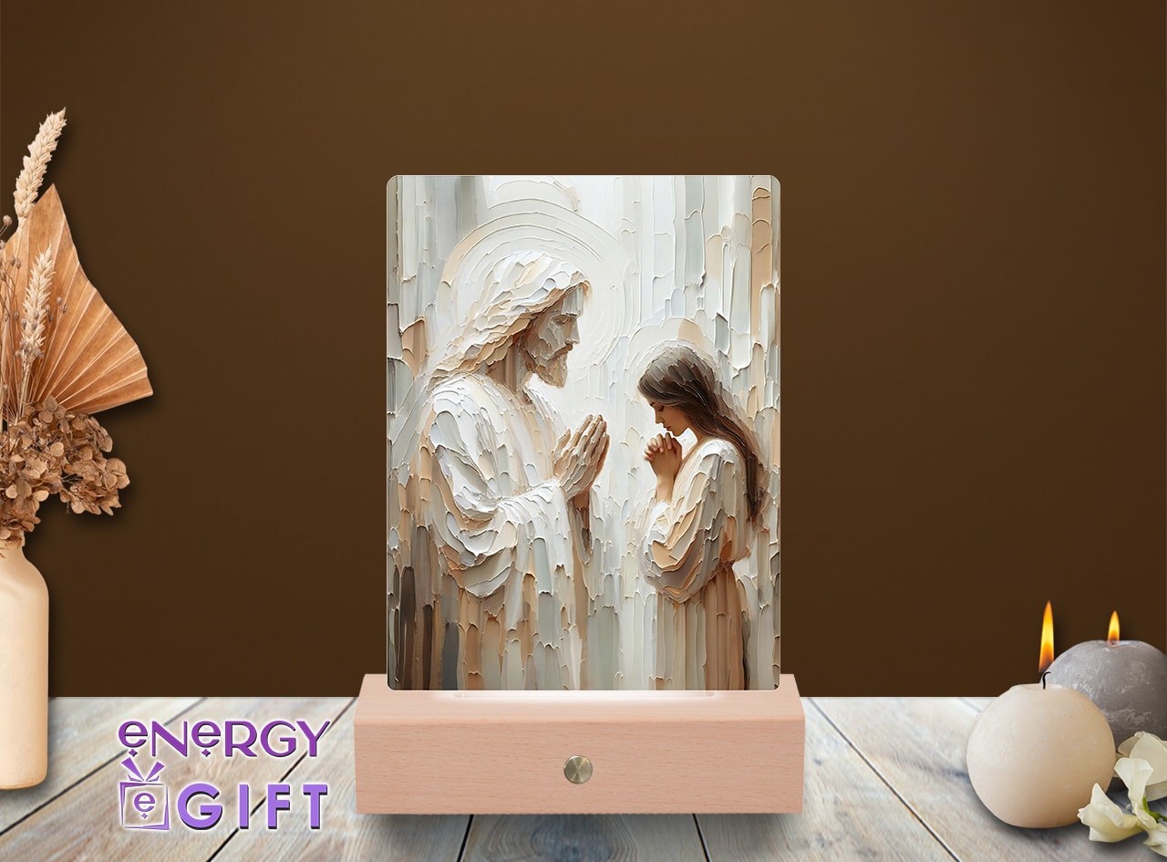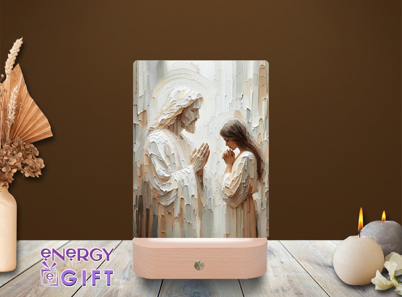 Descoperiți magia luminii cu Lampa LED 3D Religioasă, o piesă ce transformă fiecare colț al casei dumneavoastră într-un loc de liniște și inspirație. Această lampă nu doar că emite o lumină blândă și reconfortantă. Aduce la viață imagini divine care vă îndrumă prin momentele de reflecție și meditație.