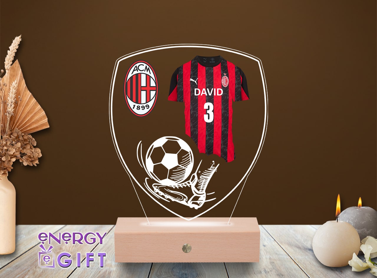 Dedicată adevăraților suporteri AC Milan, această lampă LED 3D aduce culorile și pasiunea echipei direct în camera ta. Poate fi personalizată cu nume, dată și un mesaj special – un cadou unic pentru orice fan rossonero.
