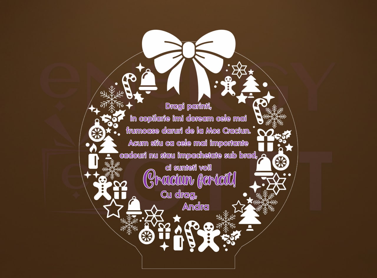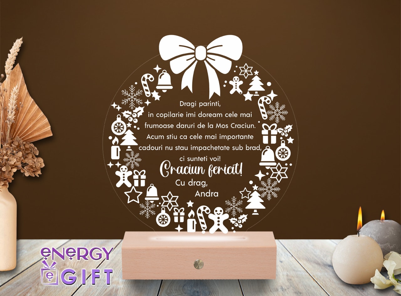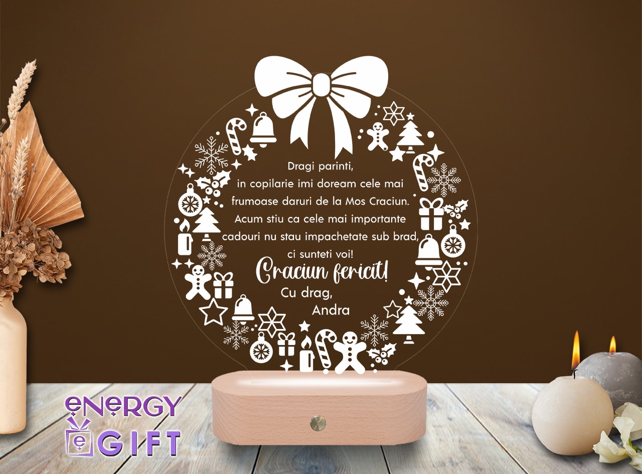 Surprinde magia sărbătorilor cu o lampă LED 3D personalizată de Crăciun. Adaugă numele celor dragi, o fotografie sau un mesaj călduros și oferă un cadou care luminează inimi – perfect pentru familie, prieteni sau colegi.