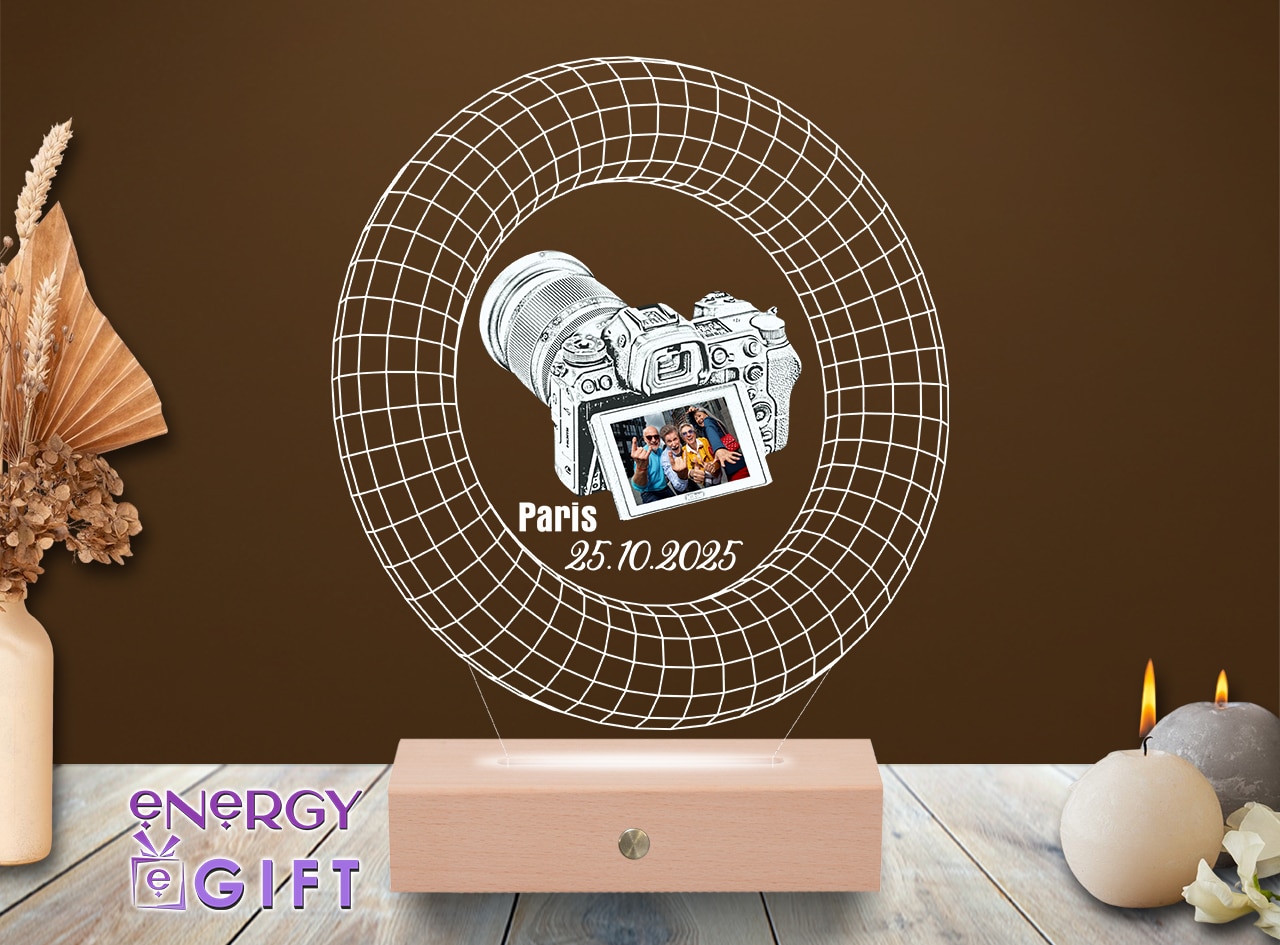 Surprinde un fotograf pasionat cu o lampă LED 3D creată special pentru el! Personalizată cu poză și un mesaj emoționant, este o alegere unică pentru birou sau studio.