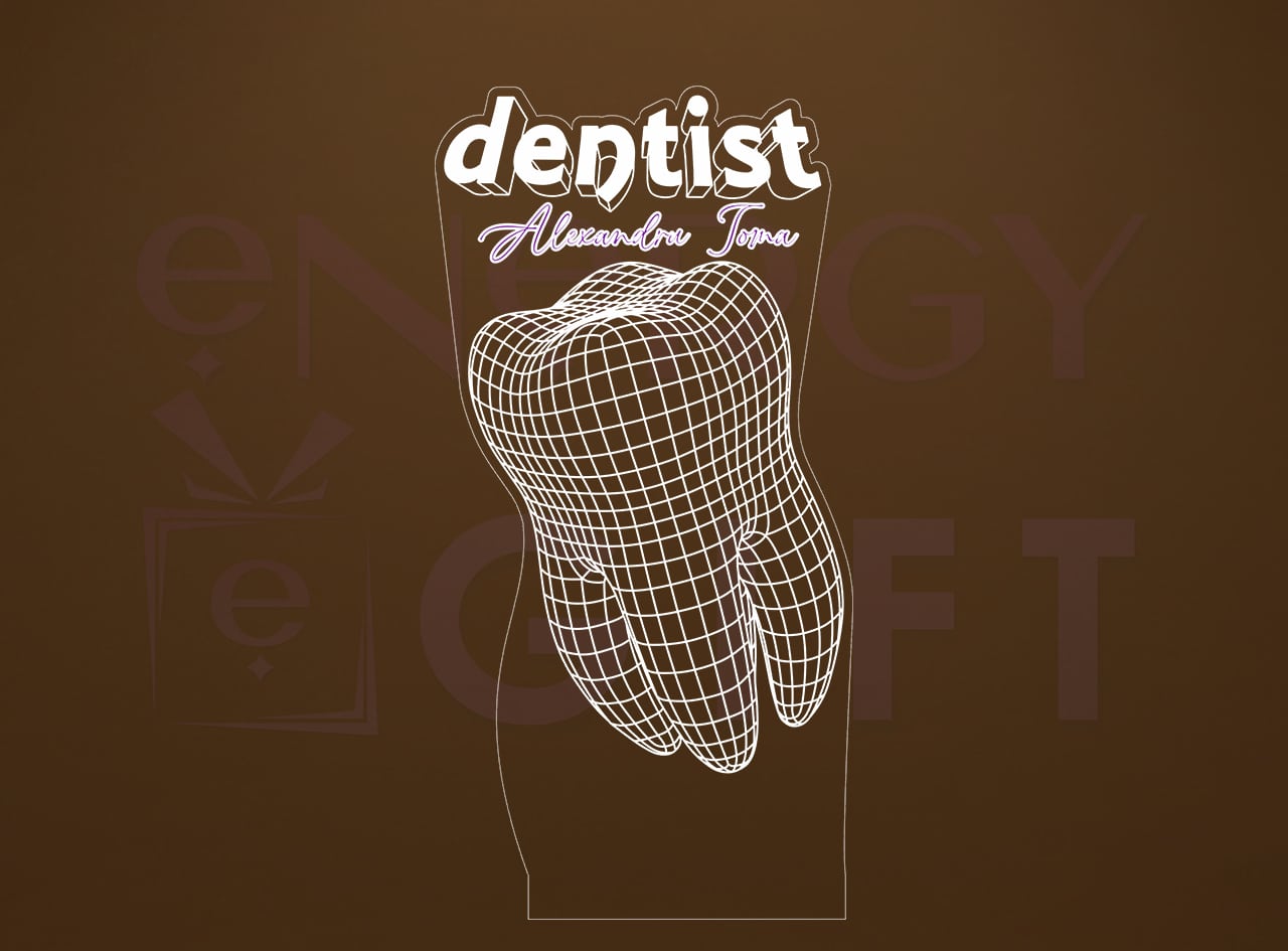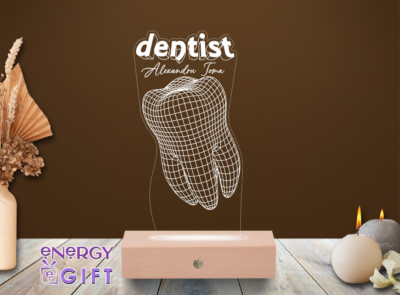 Această lampă LED 3D este dedicată stomatologilor – cu design reprezentativ și text personalizabil. Un cadou elegant și practic, ideal pentru decorul cabinetului sau al biroului personal.