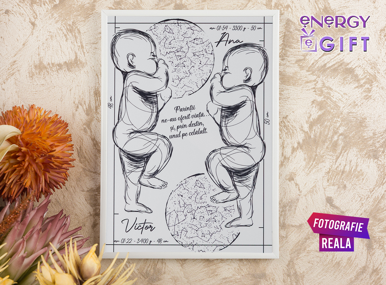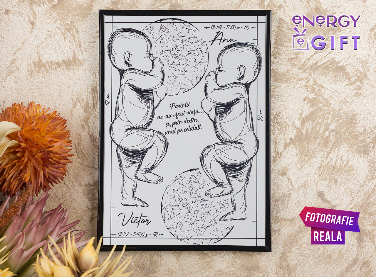 Această hartă a cerului personalizată redă cu precizie poziția reală a stelelor din ziua, ora și locația care marchează acest nou început. Fie că este vorba despre mutarea într-un nou cămin, începutul unei căsnicii, nașterea copilului sau o schimbare majoră în viață, tabloul transformă emoția în artă.