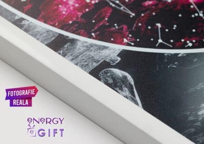 Tablourile EnergyGift sunt realizate exclusiv pe PVC ultra-lucios (negru sau alb), cu print UV mat la 1200 dpi. Combinația dintre print și suprafața lucioasă creează un efect vizual aproape 3D.